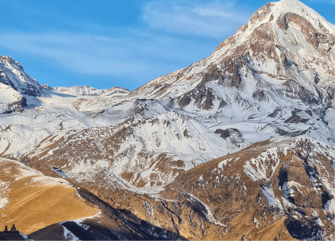 One day trip to Ananuri and Kazbegi route from the capital Tbilisi. The snow-capped peak of Mount Kazbeg will open a spectacular view of Georgia. On the way, you will visit the charming Ananuri complex surrounded by the calm Lake Zhinvali, see the beauty of the mountain rivers and the Kazbeg Mountains, and enjoy the tranquility of the Gergeti Church, which is the final destination. Here you will see a wonderful view of Kazbegi village and the great Kazbegi mountain.