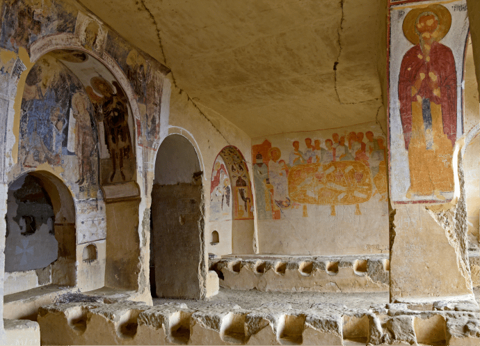 The journey begins in Tbilisi. Our guide and driver will meet you at your hotel. You will drive about 70 kilometers into the semi-desert area near Gareja. On the way, you will stop at a local cafe to enjoy delicious snacks. David Gareža Monastery will first introduce you to Lavra Cave Monastery, which was founded in the 6th century. Lavra Monastery is a residential cave complex with a courtyard, a church and other buildings. You will continue to Udabno, where you can rest and enjoy the views of Azerbaijan from the Sakartvel side. Udabno is famous for its late 12th century painting. Millennium frescoes in Udabno depict scenes such as The Last Supper and The Exaltation of the Cross. After resting, you will go down another road and return to Tbilisi.