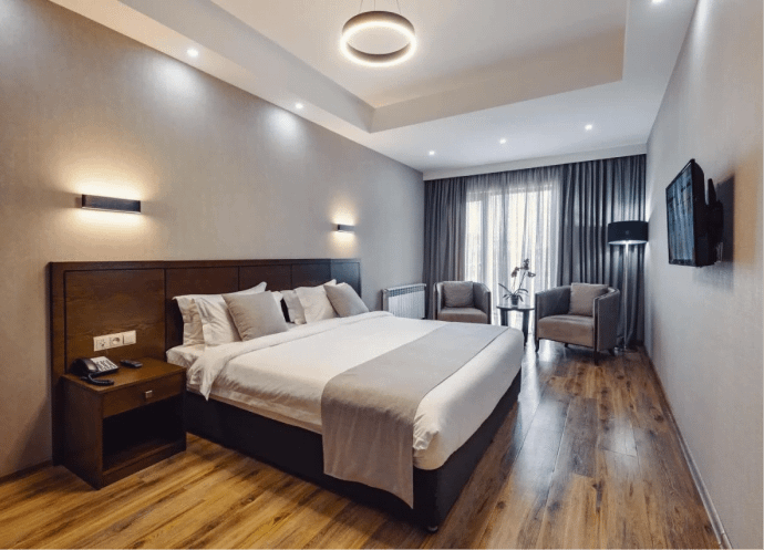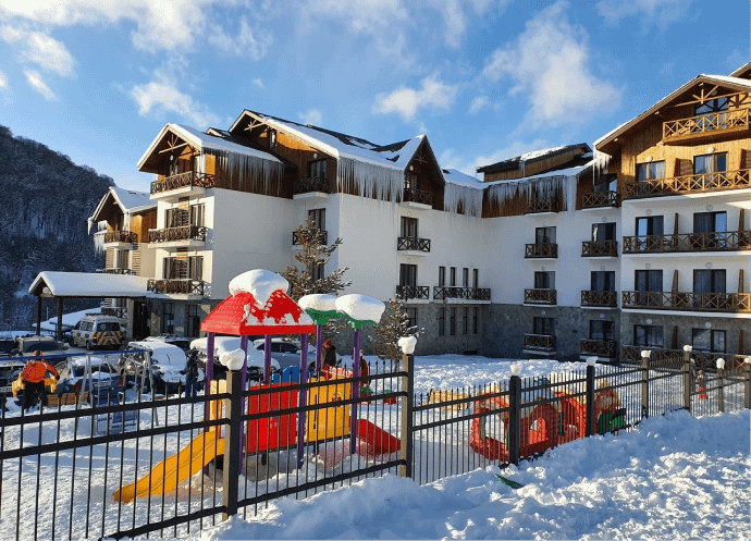 The hotel is located in the Georgian ski resort Bakuriani, 185 km from Tbilisi, 160 km from Kutaisi. A complex with sophisticated infrastructure that aims to create an environment with the highest quality services, beautiful views and convenient locations so that our guests never have to leave the complex without necessity.