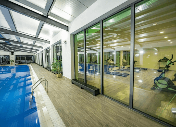 You can relax in the hotel’s spa center. Swimming pools for both children and adults, a whirlpool, a Finnish sauna and a Turkish hammam, a wellness center and, of course, spa treatments with a beauty salon and massages await you.